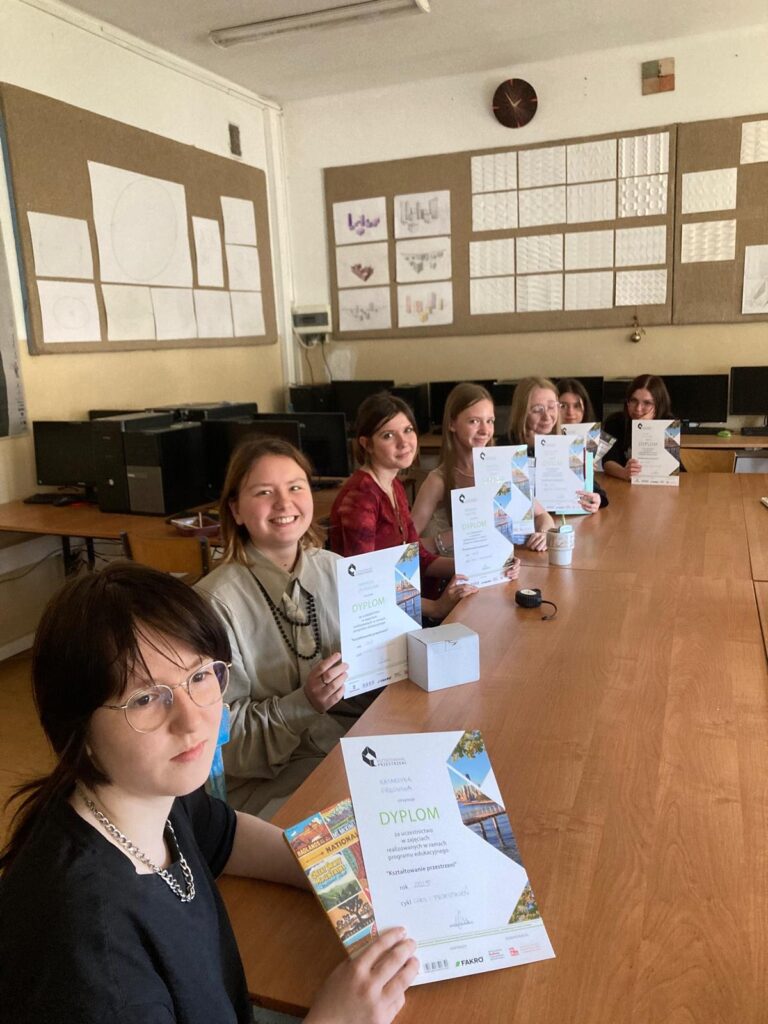 W Państwowym Liceum Sztuk Plastycznych im. Erica Mendelsohna w Olsztynie zakończył się kolejny cykl zajęć z programu Kształtowanie Przestrzeni – w tym semestrze był to cykl C – Czas i przestrzeń. Młodzież bardzo aktywnie uczestniczyła w zajęciach, była mocno zainteresowana zagadnieniami dotyczącymi współczesnych miast. Na ostatnich zajęciach wykorzystaliśmy 🎲 grę planszową „Rozegraj miasto 2.0” – niesamowita edukacja w zakresie zapoznania młodych ludzi z zagadnieniami konsultacji społecznych, oj działo się!